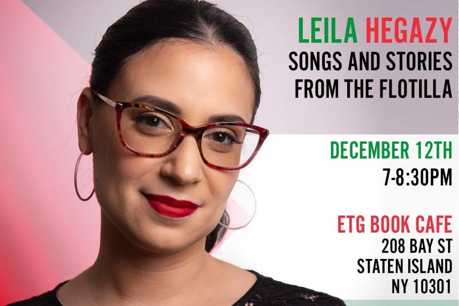 Join us for a deeply moving night of live music and Leila Hegazy's reflections/stories from Leila's recent time on the flotilla taking aid to Palestinians.